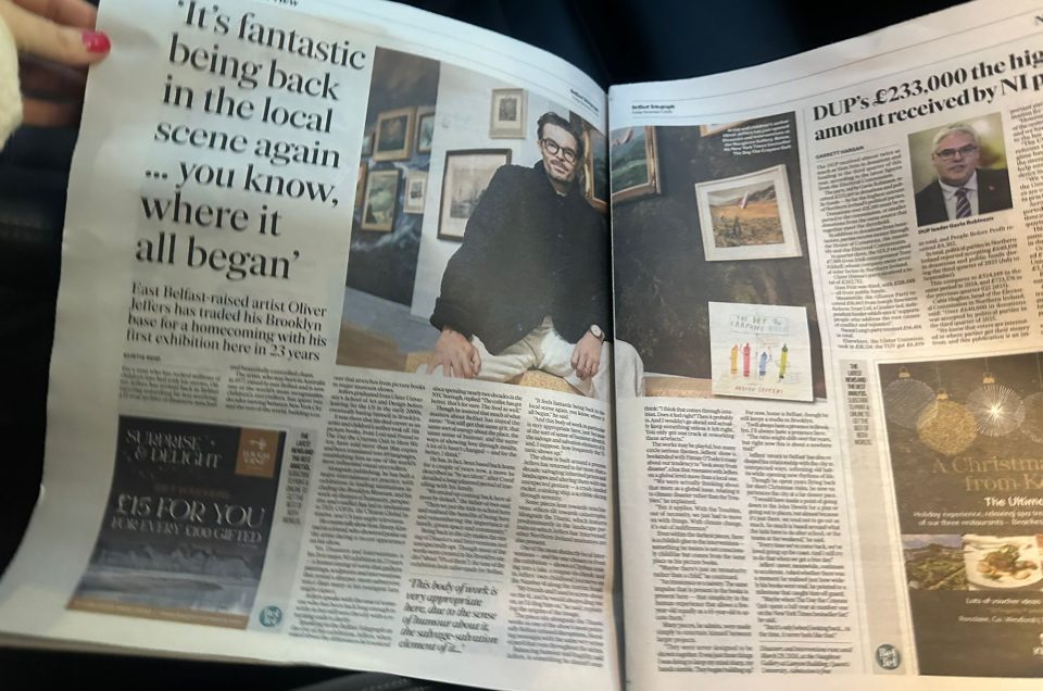 Front page of Belfast Telegraph with Oliver Jeffers